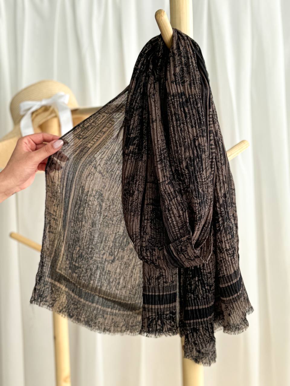 این شال نخی، سبک با عرض کم از محصولات جدید مناسب استفاده در بهار و تابستان است.